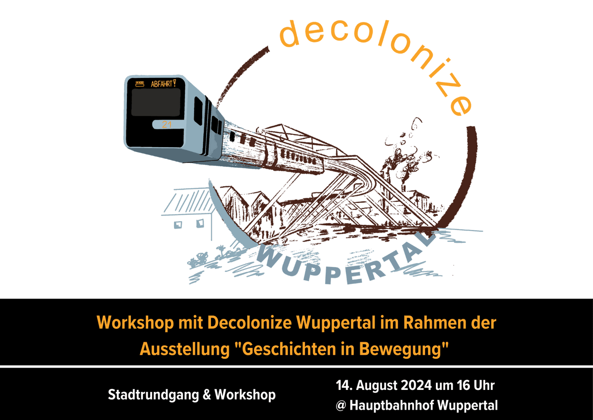 Stadtrundgang & Workshop mit Decolonize Wuppertal im Rahmen der Ausstellung „Geschichten in Bewegung“ 📆 14.08.2024 um 16:00 Uhr 📍Hauptbahnhof Wuppertal „Dekoloniale Aufarbeitung“ ist heutzutage ein geläufiger Begriff. Aber was bedeutet es eigentlich? Und was hat das, bis auf ein paar Straßennamen, mit unserem Leben heute zu tun? Das wollen wir gemeinsam mit Decolonize Wuppertal ergründen. Seit 2021 […]