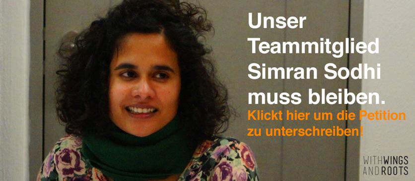 Liebe Unterstützer_innen, Freund_innen und Kolleg_innen, wir wenden uns heute mit einer großen und dringenden Bitte an Euch alle! Unsere withWINGSandROOTS-Mitarbeiterin und Freundin Simran Sodhi soll Ende des Monats aus Deutschland ausgewiesen werden, da ihre Arbeit als erste Integrationslotsin im Berliner Bezirk Treptow-Köpenick laut Ausländerbehörde nicht dem „öffentlichen Interesse“ Deutschlands diene, da sie mit ihrem Abschluss […]