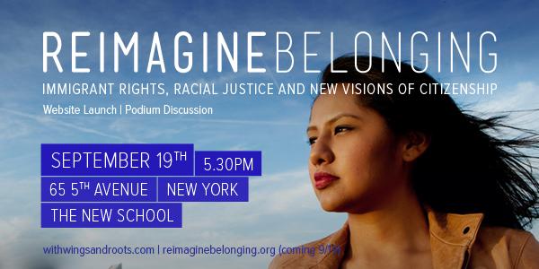 Mark your calendars for the launch of our interactive website Reimagine Belonging – September 19th from 5:30-8:30pm at The New School’s brand new Hoerle Lecture Hall and Event Cafe. Visitors will attend a panel discussion on the intersections of immigrant rights, racial justice, and visions of citizenship; explore an installation of our timelines of migration, citizenship, and belonging; and have the chance to share their own stories for the site. Our Berlin event was a huge success and we can’t wait to continue in New York. Please RSVP today!